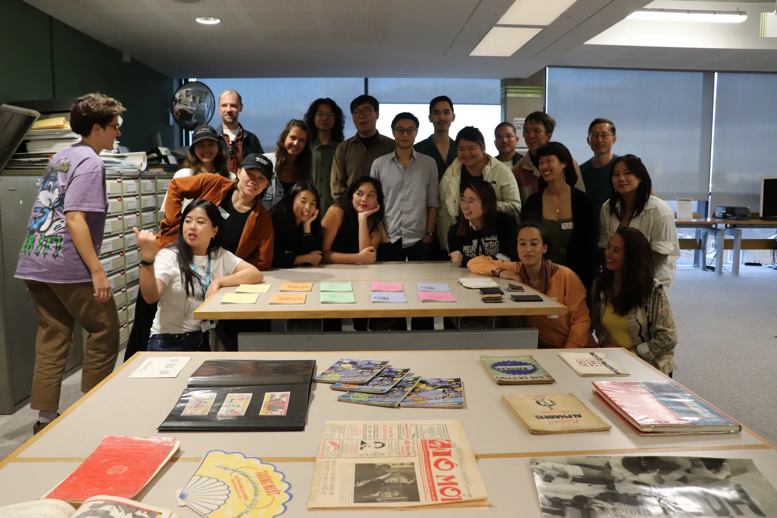 As part of the first round of BC funding, together with Lưu Chữ, we hosted an in-person workshop/showcase in April 2023 for artists, designers, archivist and community heritage workers in Saigon in the collective’s new library. Being together with Lưu Chữ in one, intimate space enabled rich cultural exchange and informal discussion with local artists led by our long-standing themes of exploration: how can we create and care for our own archives to capture our shared heritage? What kinds of futures can we imagine for our archive as our own histories bend and shift? In June, Lưu Chữ and AVA co-hosted another workshop – this time online – to introduce their practice of archiving, share parts of their tremendous collection as well as the stories and lessons learned along the way.